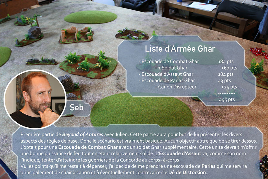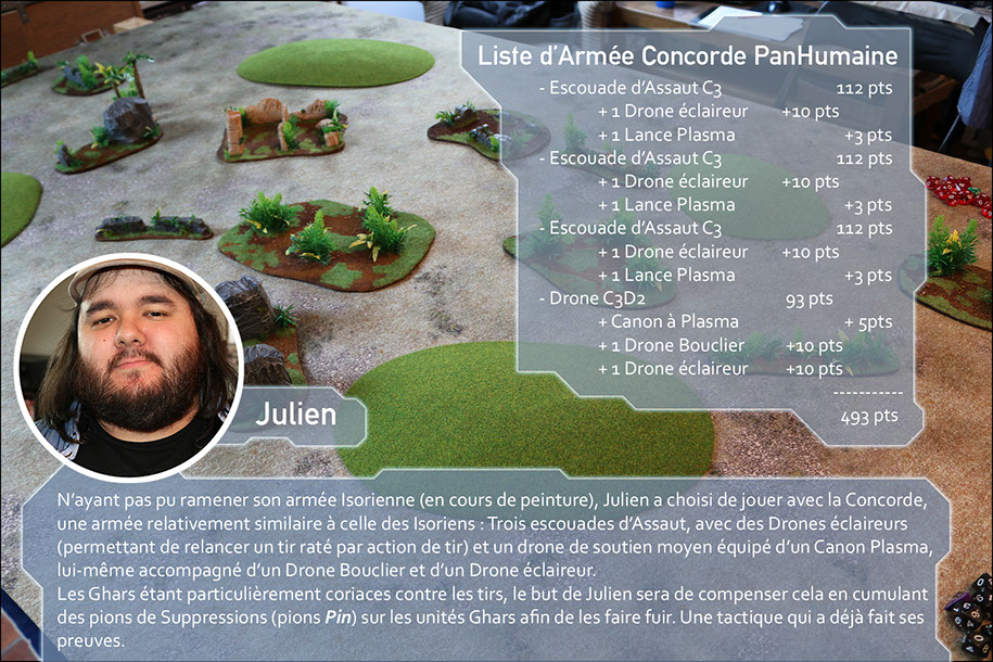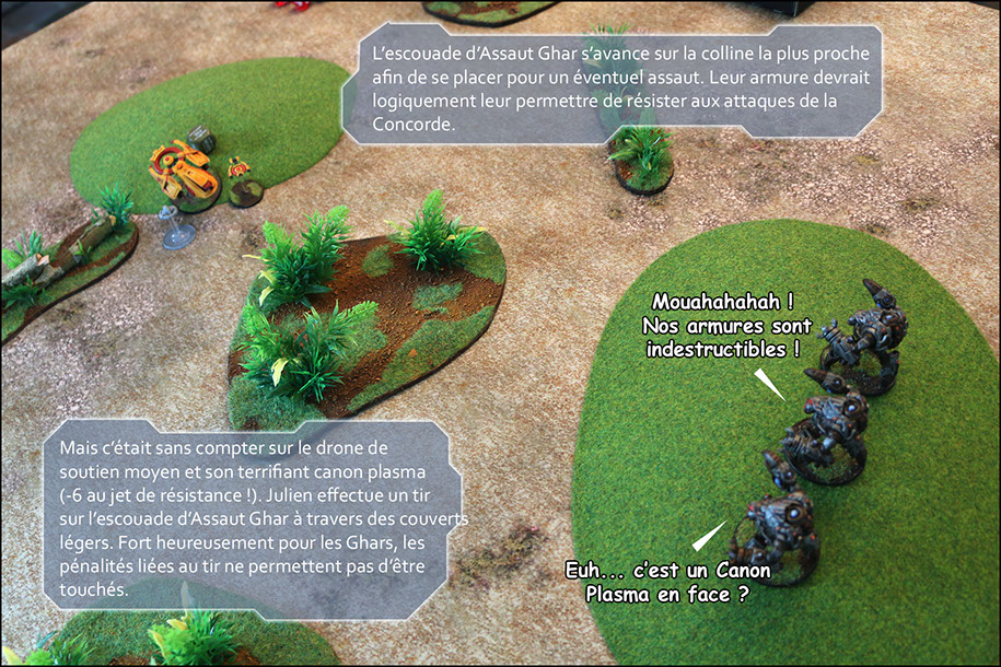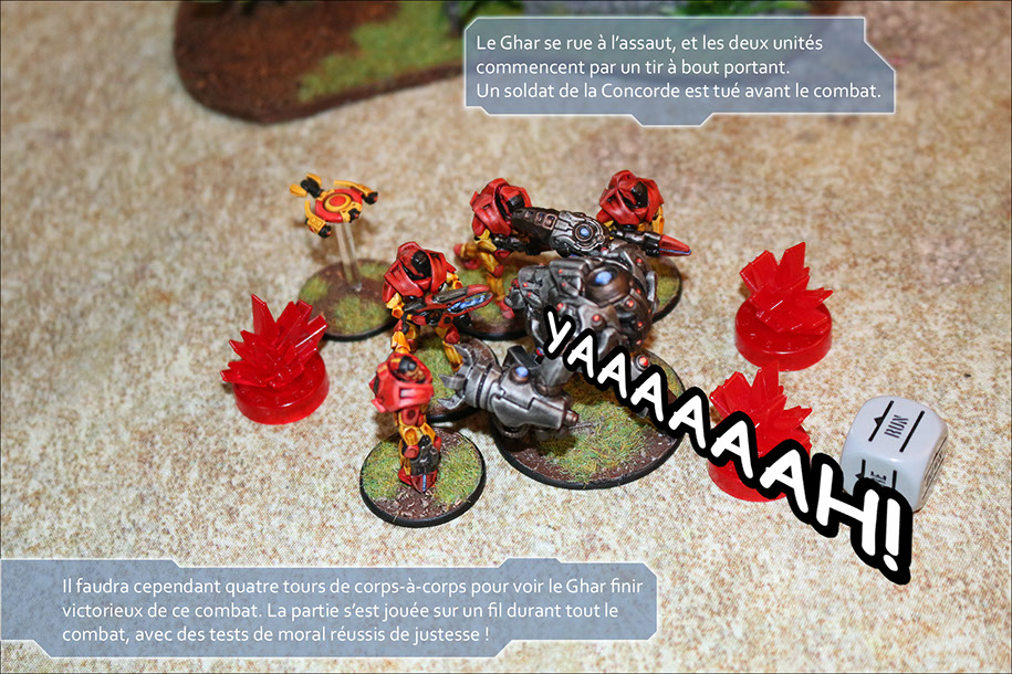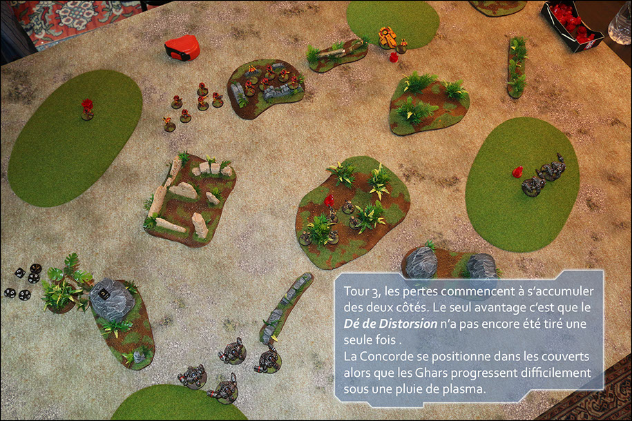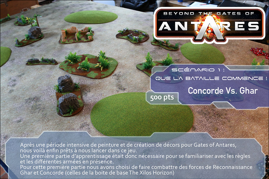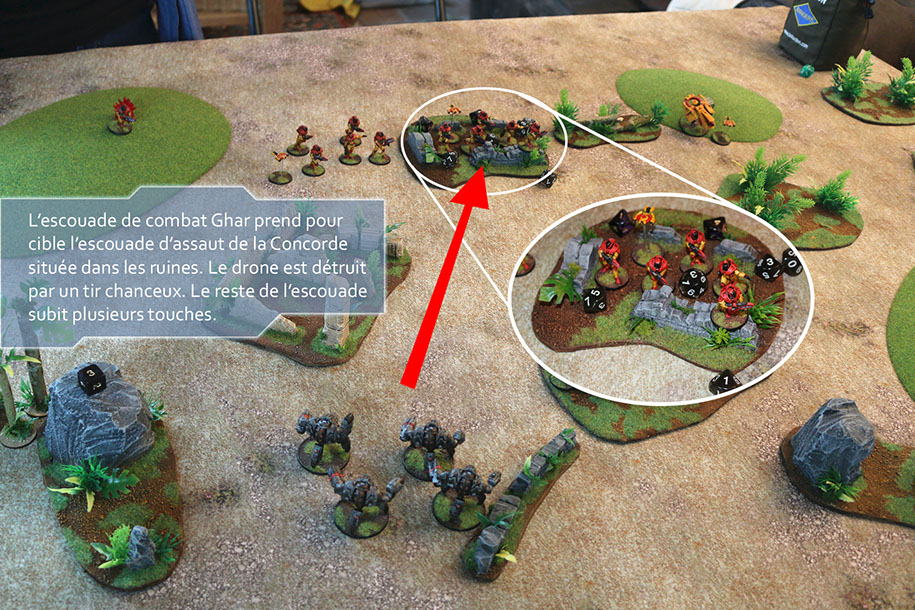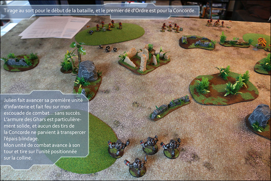 Une simple escarmouche entre deux forces de Reconnaissance Ghar et Concorde, de 500 points chacune.