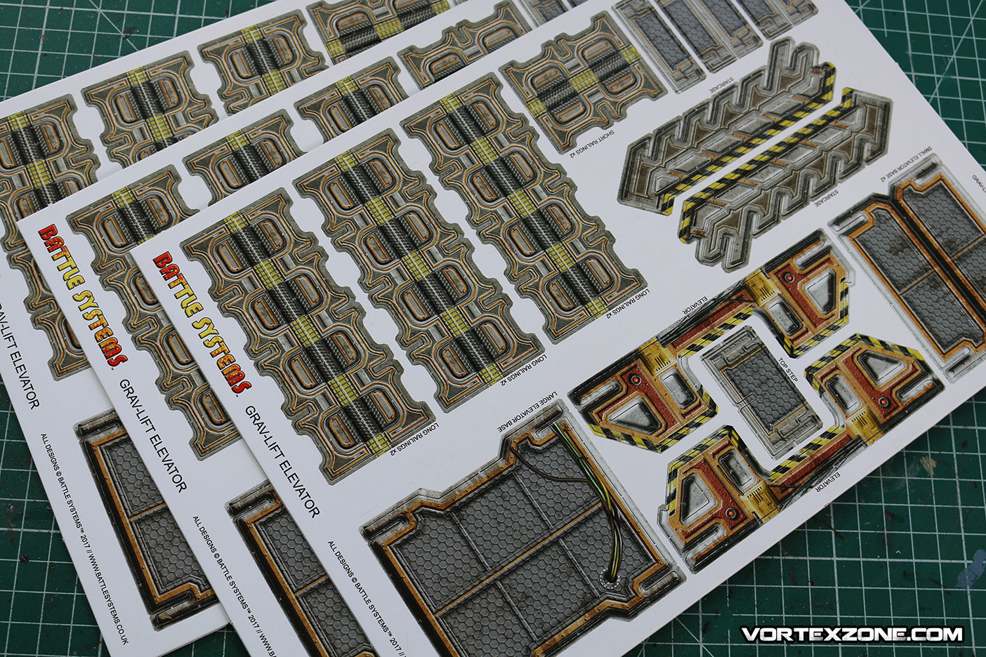 Cette boite comprend un tapis mousse de terrain futuriste (60x60cm) et de nombreux éléments supplémentaires sont disponibles sur leur site : http://www.battlesystems.co.uk/