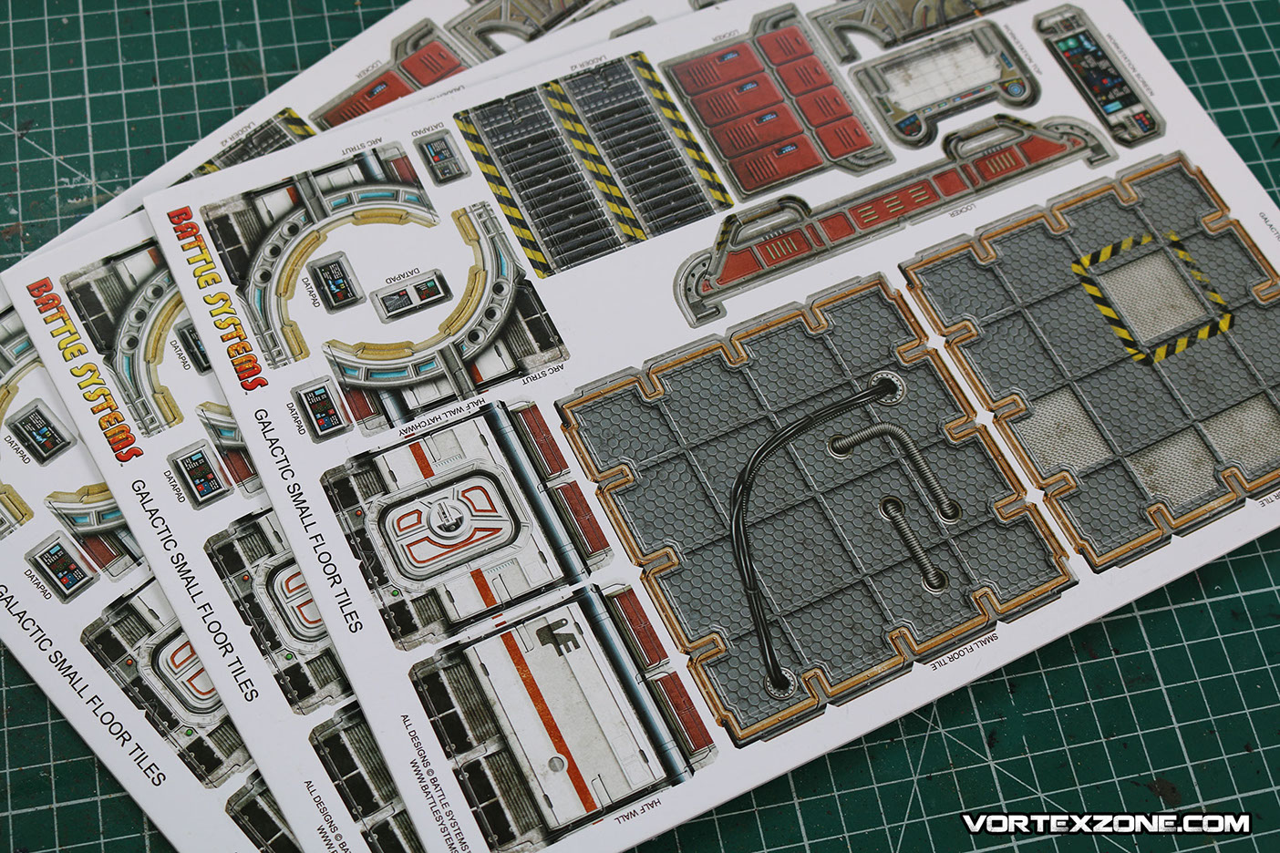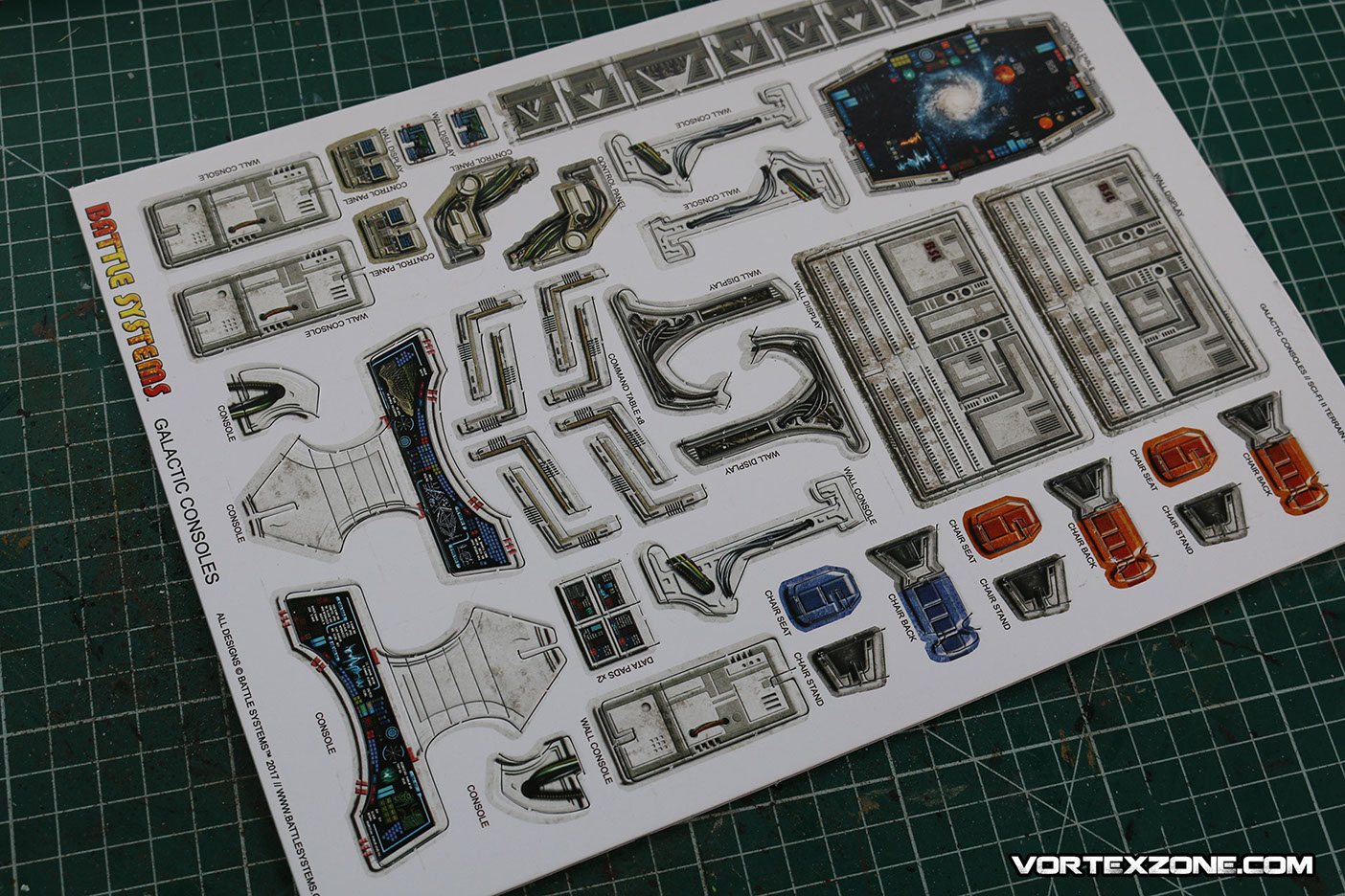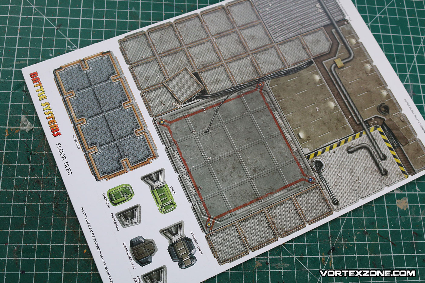 La particularité de Battle Systems est de proposer des décors imprimés sur du carton épais (1.5mm) et totalement modulables. Idéal pour créer une ambiance, ce principe de décors vous permettra rapidement d'élaborer des scénarios et/ou des évènements particuliers grâce aux différents petits éléments inclus dans la boite (caisses, ordinateurs, tables, chaises, etc.).