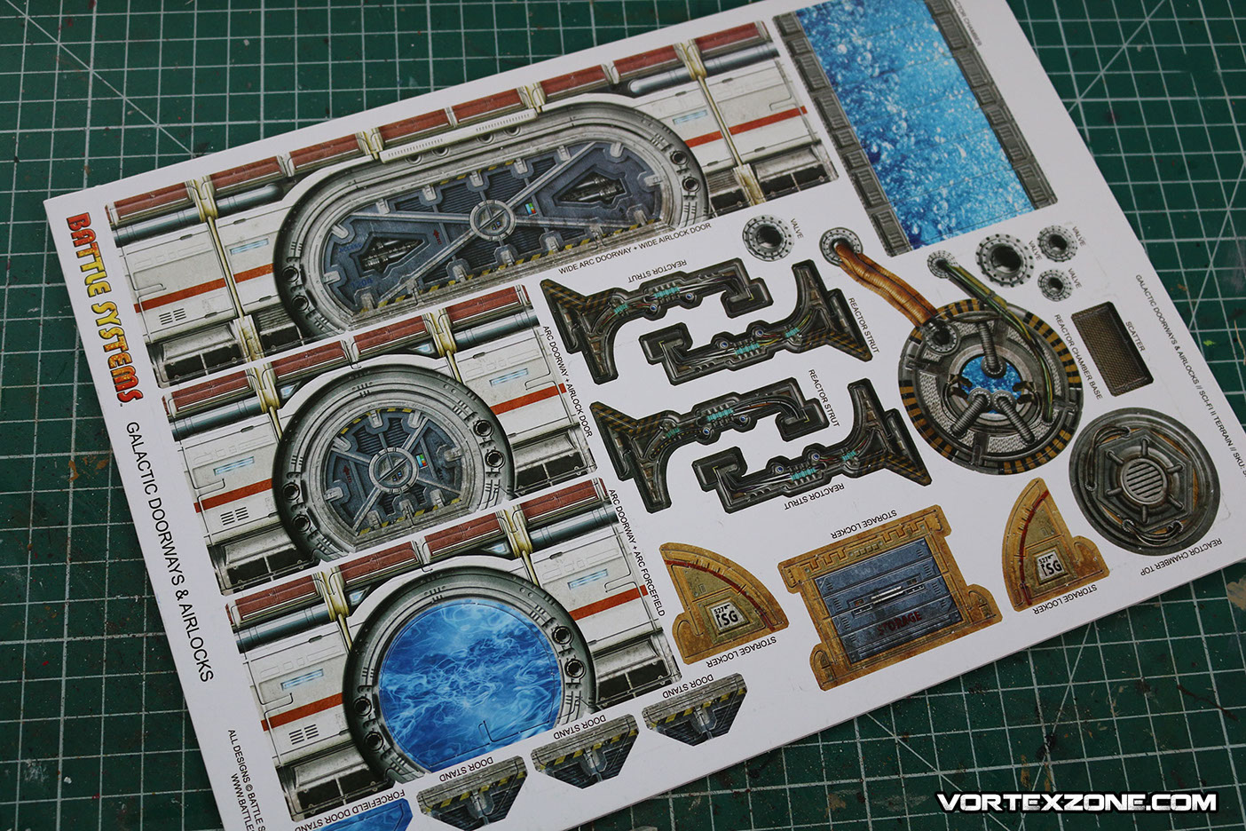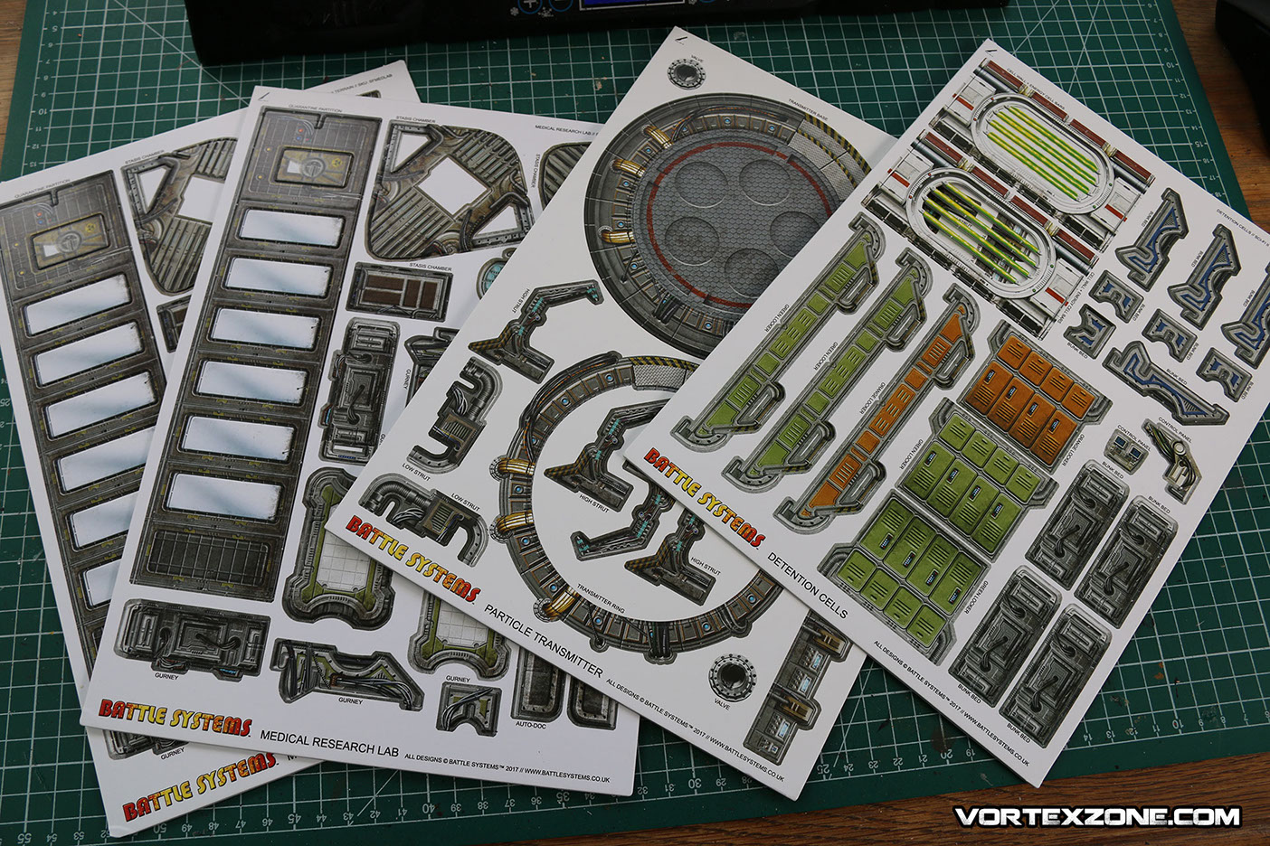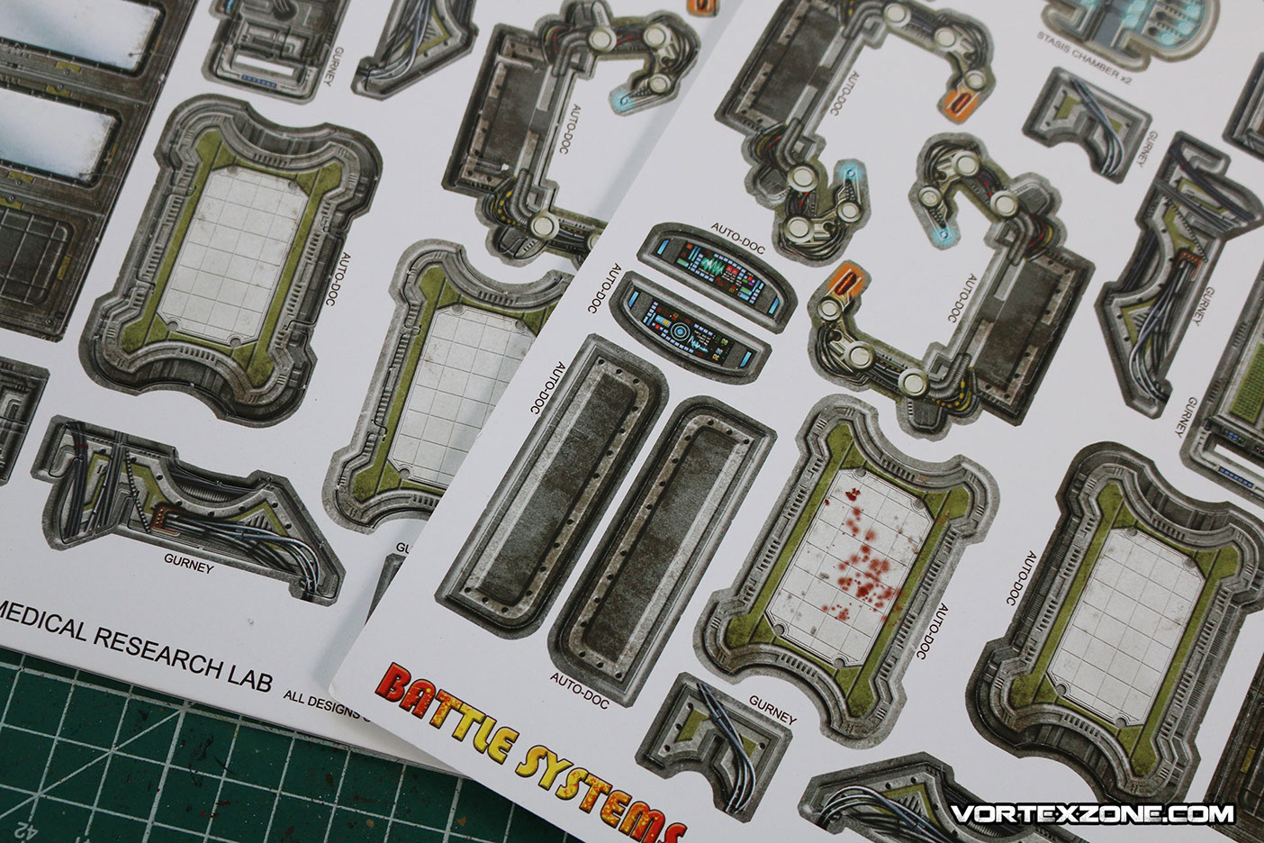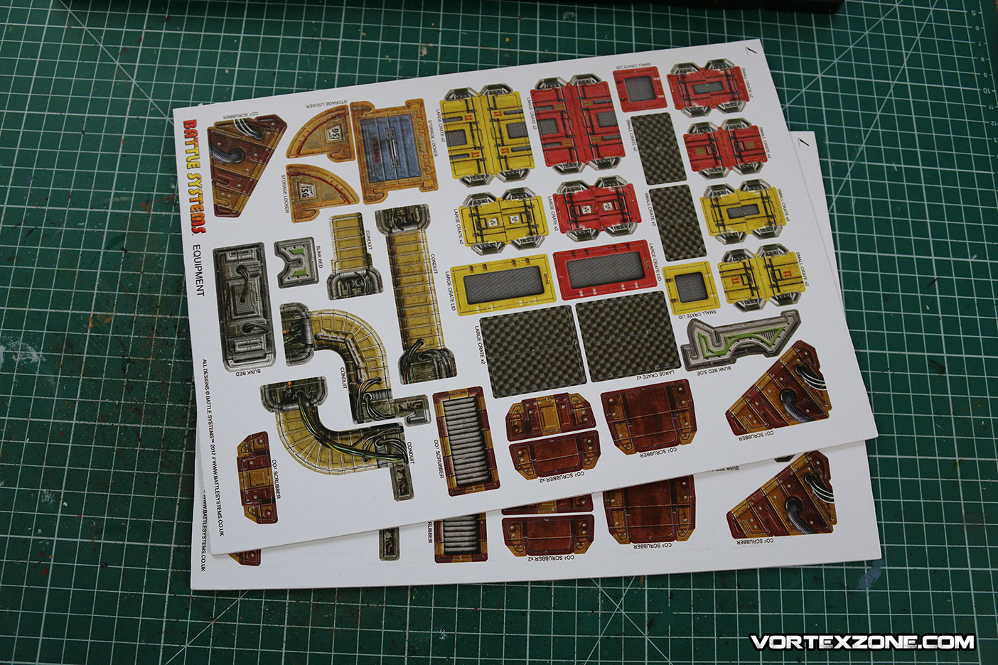 La particularité de Battle Systems est de proposer des décors imprimés sur du carton épais (1.5mm) et totalement modulables. Idéal pour créer une ambiance, ce principe de décors vous permettra rapidement d'élaborer des scénarios et/ou des évènements particuliers grâce aux différents petits éléments inclus dans la boite (caisses, ordinateurs, tables, chaises, etc.).