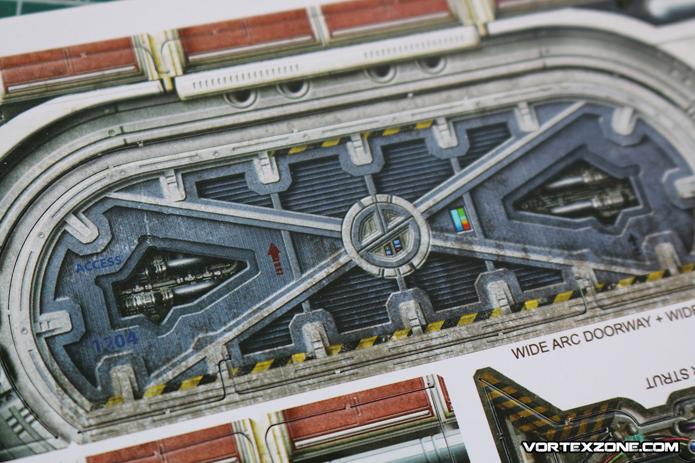 La grande porte blindée. Une encoche en bas de celle-ci permet de positionner une petite plaque pour la faire tenir debout. On peut facilement imaginer un système obligeant les troupes à tenter d'ouvrir la grande porte blindée pour entrer dans la salle de contrôle !