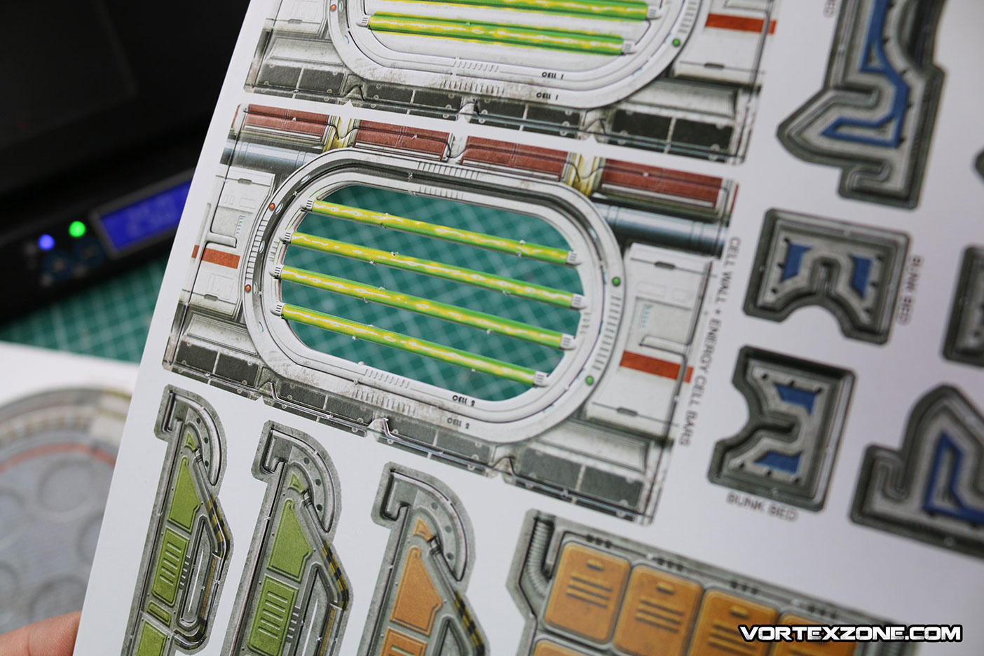 Les Cellules de Détention propose tous les éléments pour composer des cellules protégées. Portails verrouillés par des faisceaux laser, lits, casiers. Les autres éléments de la boite sont nécessaires pour en profiter.
