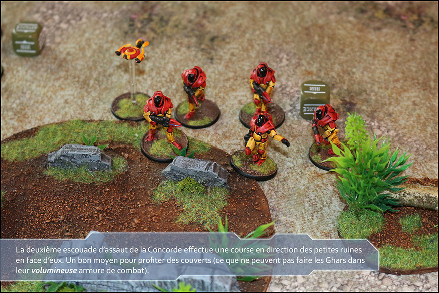 Une simple escarmouche entre deux forces de Reconnaissance Ghar et Concorde, de 500 points chacune.