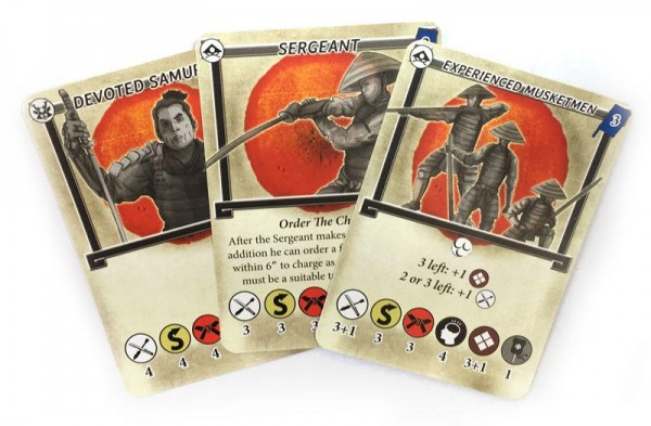 Les unités sont divisées en trois catégories. Il y a tout d'abord le Héros Samouraï. Il s'agit de votre chef de clan, du leader de votre petite force. Bref, c'est le mec le plus balaise. Ensuite, il y a les Samouraï Loyaux. Il s'agit d'un ou deux guerriers qui peuvent faire toute la différence (ils sont là pour trancher des bras, des jambes et surtout des têtes). Pour finir, il y a les Soldats. À la différence des samouraï, les soldats fonctionnent par groupe. Ils sont placés sur un socle commun (généralement par trois) et bénéficient de bonus dû à leur nombre (ceux-ci diminuent au fil des pertes de l'unité).