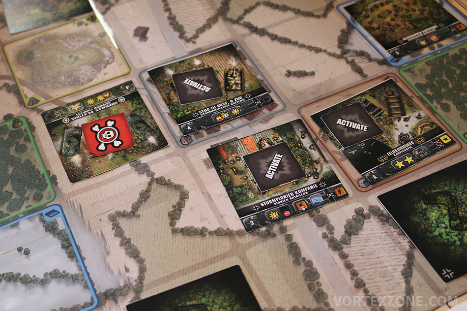 • ACTIVER UNE UNITÉ : lorsque l'on active une unité de cette manière, l'activation est automatique. Donc, pas de dé à lancer. On place un pion ACTIVÉ sur la carte sélectionnée et cette dernière peut agir à sa guise (déplacement puis attaque).