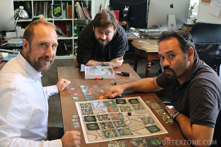 Yann m'a toutefois expliqué qu'ils allaient peut-être un peu plus désaturer le plateau pour obtenir une esthétique de carte d'état major du plus bel effet. Question effet, les Devil, ils savent de quoi ils parlent !