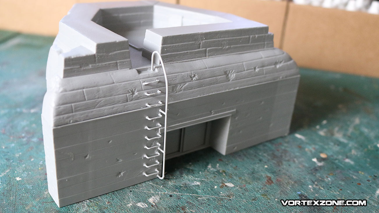 Il vous faudra penser à faire des trous pour pouvoir insérer les échelons avant le montage du Bunker. Une perceuse à main, avec un forêt de 1.05mm sera parfait pour cela.